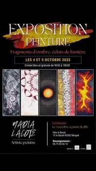 Je vous présente Nadia Lacote Artiste peintre qui effectue la toute première exposition de ses œuvres à Le Barail - Gîtes et chambre d'hôtes à Sérigné (wep c'est chez nous, on a un gîte et on fait de la patate à frites 😁 - je n'avais pas d'autres rimes décentes en "ite" -).